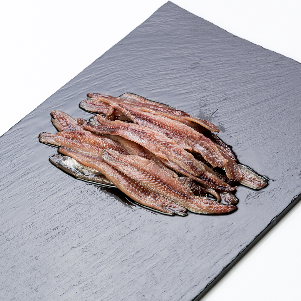 xquisitos filetes de anchoa del Cantábrico seleccionados uno a uno en aceite de oliva.