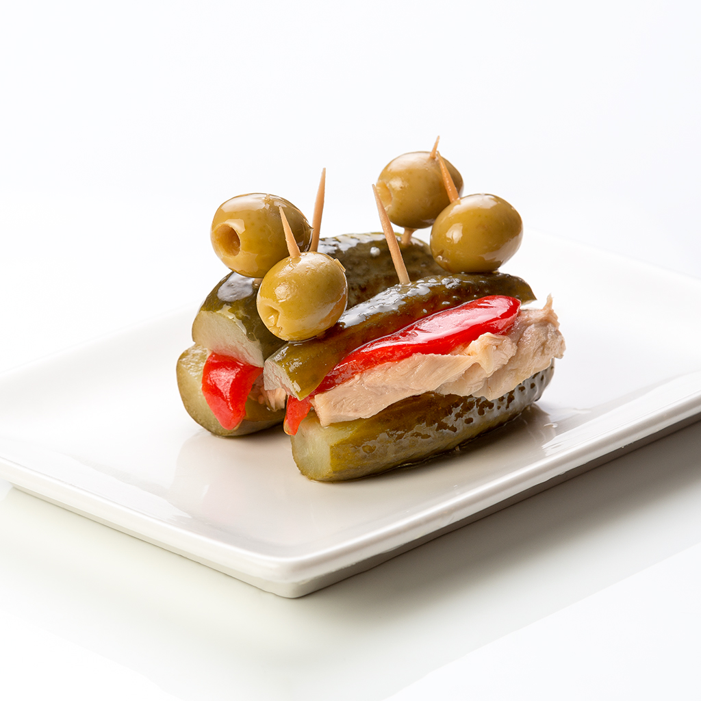 Pepinillo, Bonito escabeche, pimiento y deshuesada