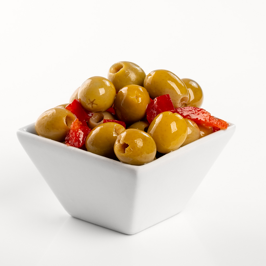 Las aceitunas deshuesada aliñada, son las clásicas deshuesada pero con aliño de aceite, limón y sal junto con pimiento.