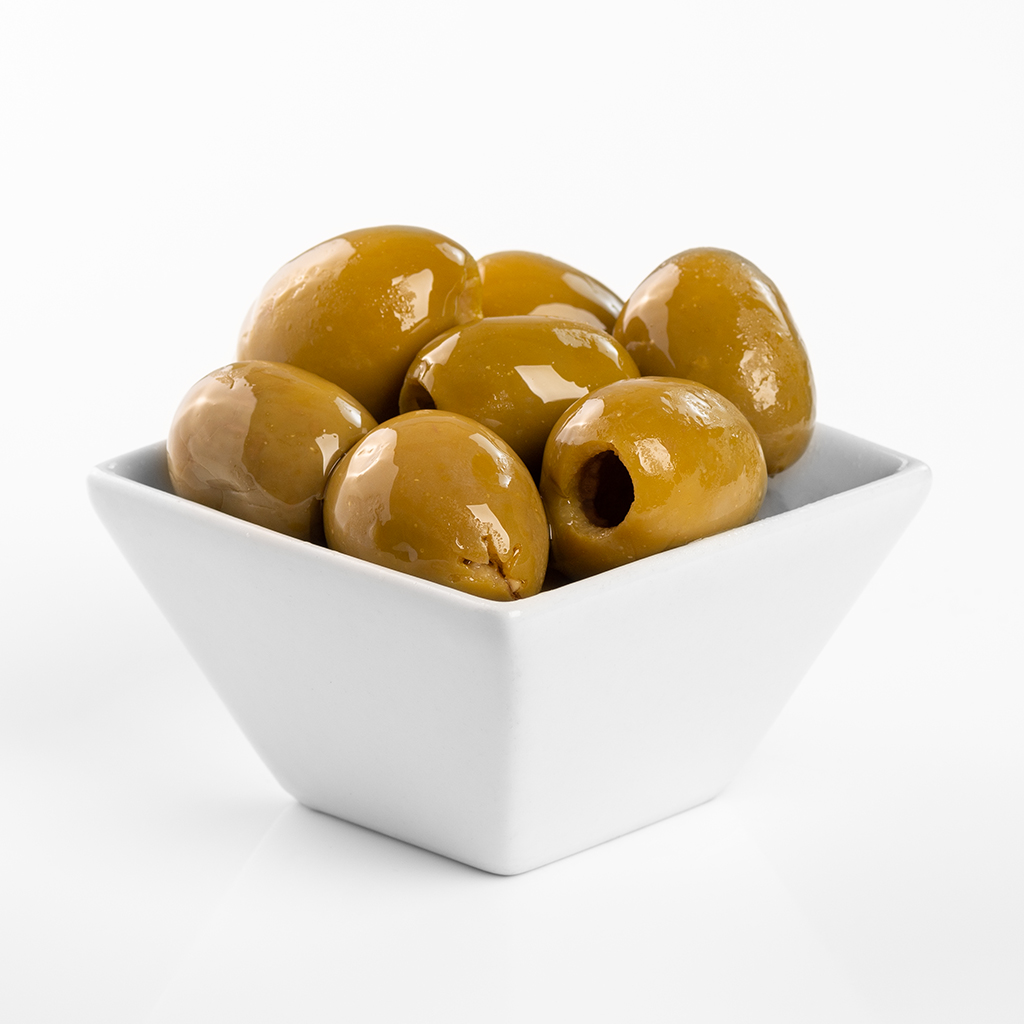 Aceitunas gordal con hueso, recolectadas una a una procedentes de Andalucía con un sabor exquisito. La aceituna gordal, es muy valorada por el tamaño de sus frutos, que pueden llegar a superar los 15 gr de peso, aunque la media se sitúa en 12,5 gr. Es además redonda y carnosa, por lo que soporta bien fermentaciones largas y los aderezos fuertes. Es una variedad que da poco aceite, por lo que se destina a mesa.
